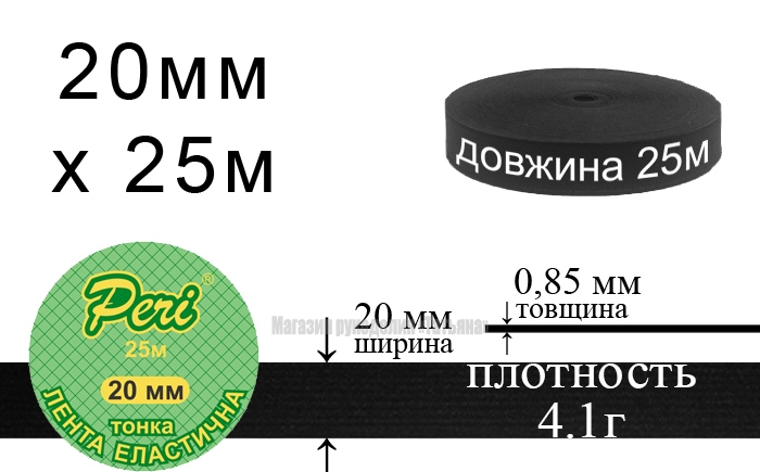 Лента эластичная тонкая 20 мм Peri ЛЕТ(20)/4.1г-черная