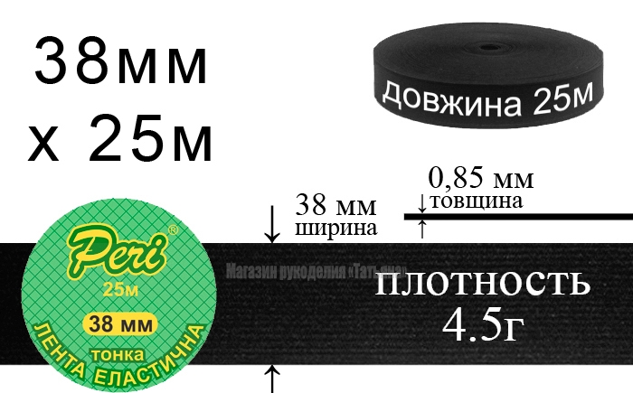 Лента эластичная тонкая 38 мм Peri ЛЕТ(38)/4.5г-черная