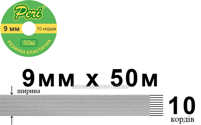 Резинка эластичная бельевая 9 мм Peri РЕ9(10)50-белая